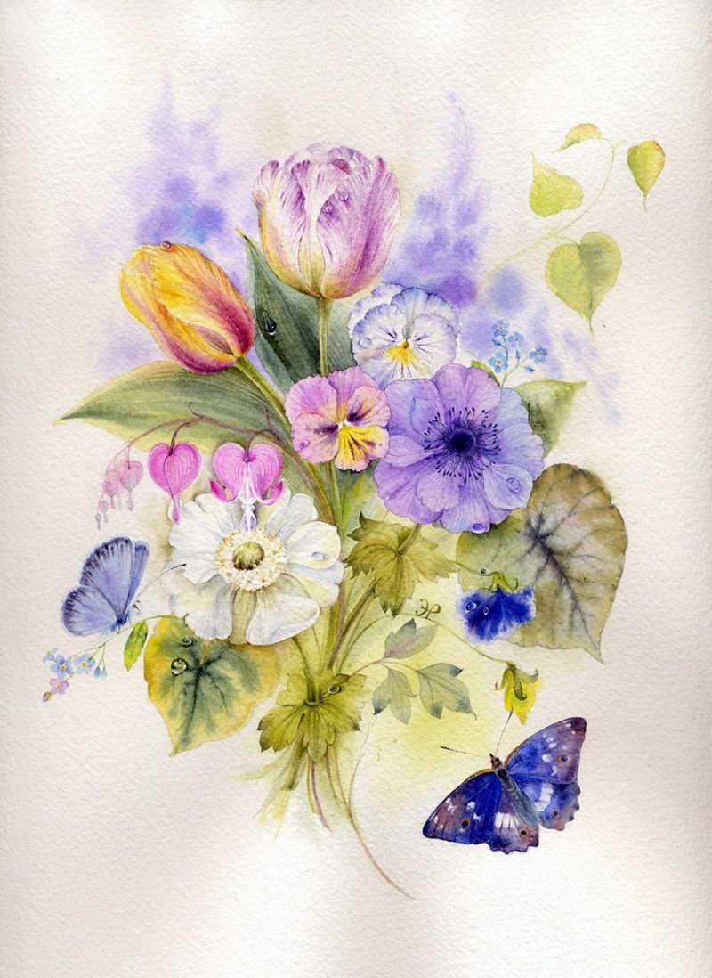 Открытки с цветами нарисованные