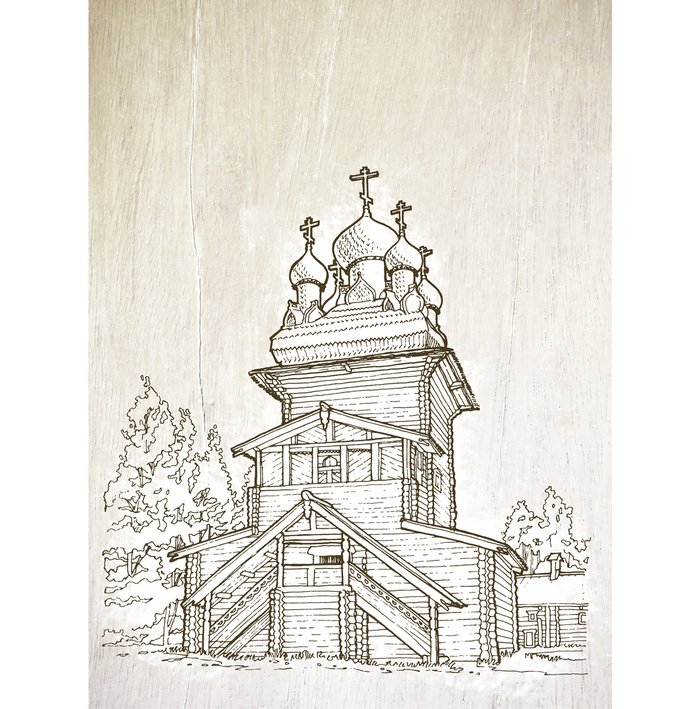 ![Преображенская Церковь погоста Кижи карельская зарисовка]()