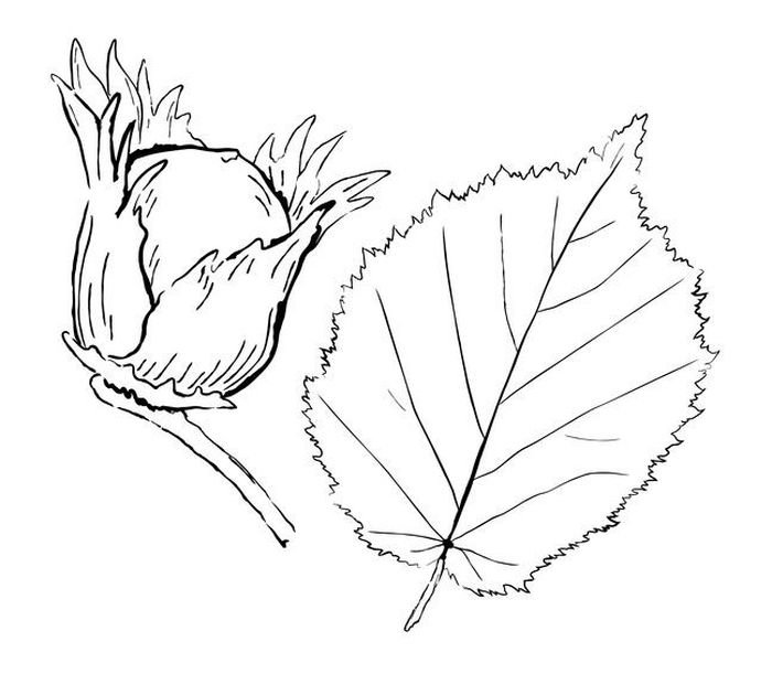 ![Лист лещины рисунок]()