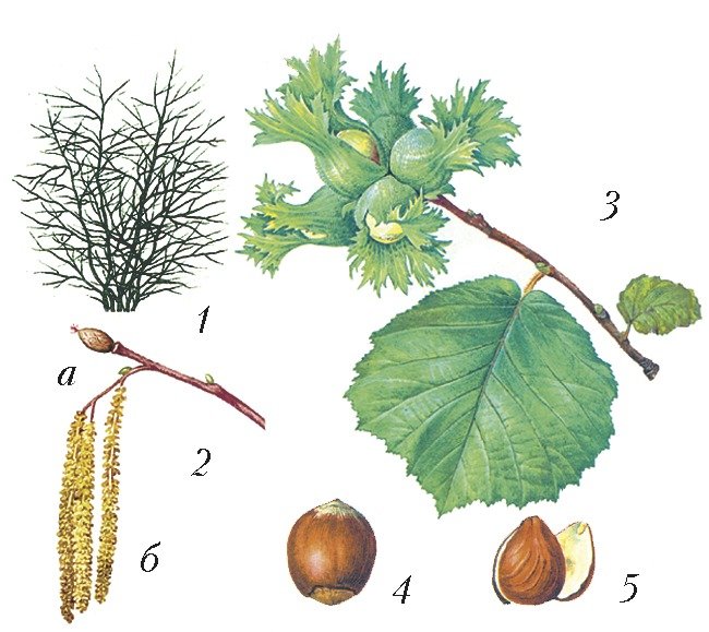 ![Лещина Ботаническая иллюстрация]()