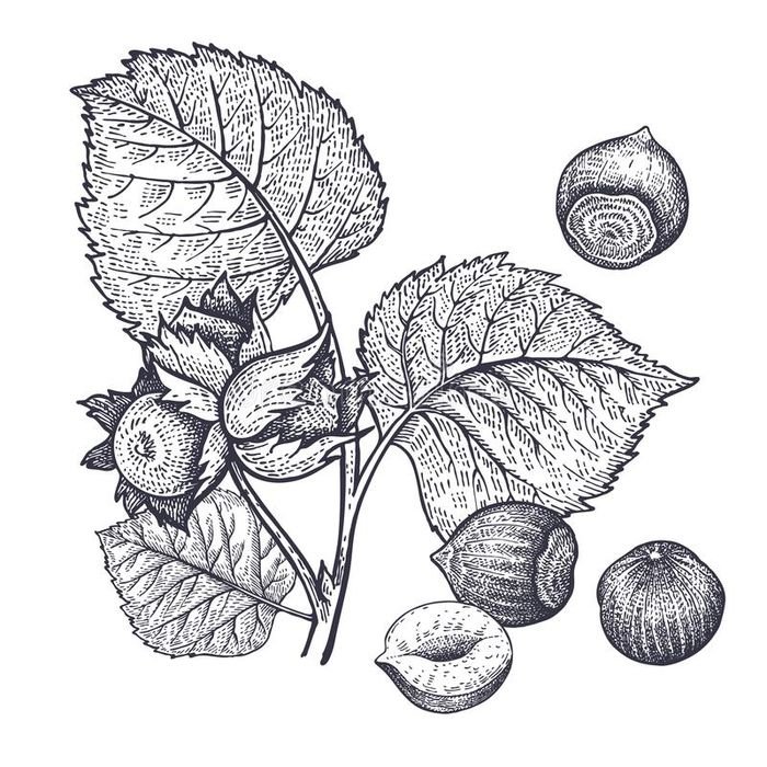 Лещина Ботаническая иллюстрация