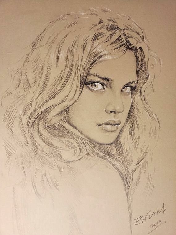 ![Наталья Водянова портрет карандашом]()