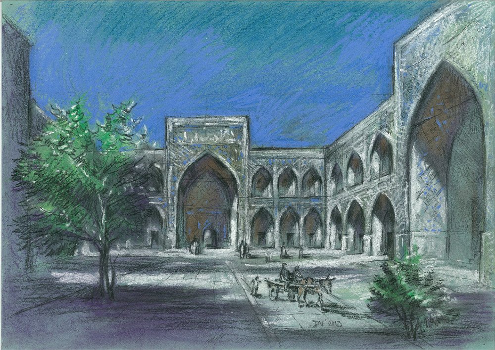 ![Мечети Самарканд Бухара рисунок]()