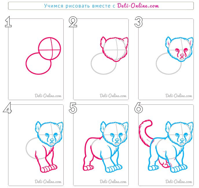 ![Пошаговый рисунок кошки]()