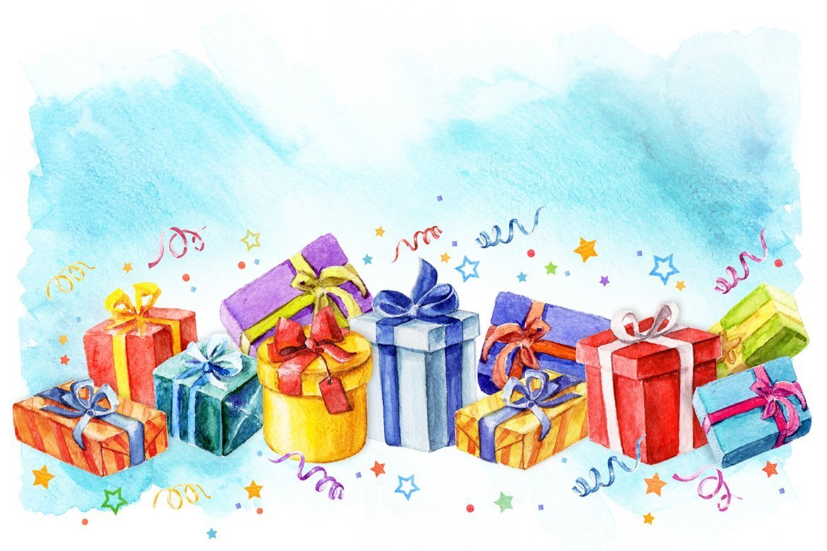 ![Подарок рисунок акварель]()