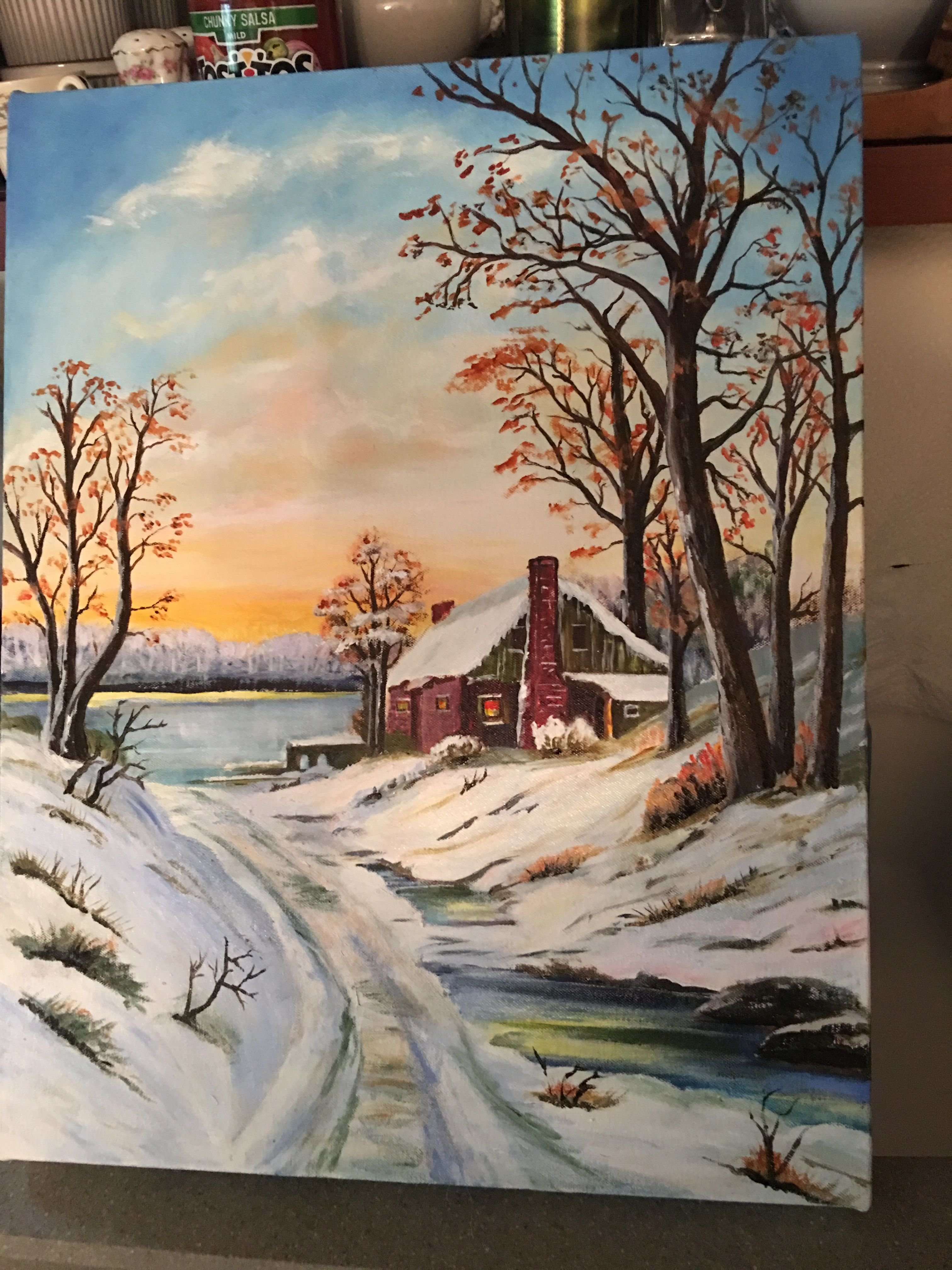![Живопись по номерам на холсте акриловыми красками зиму]()