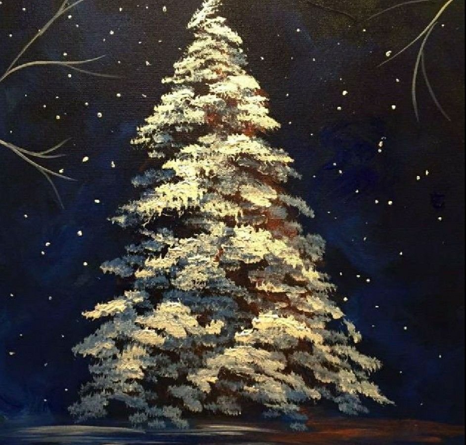 ![Новогодняя картина акрилом для начинающих]()