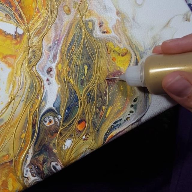 ![Рисование золотым акрилом]()