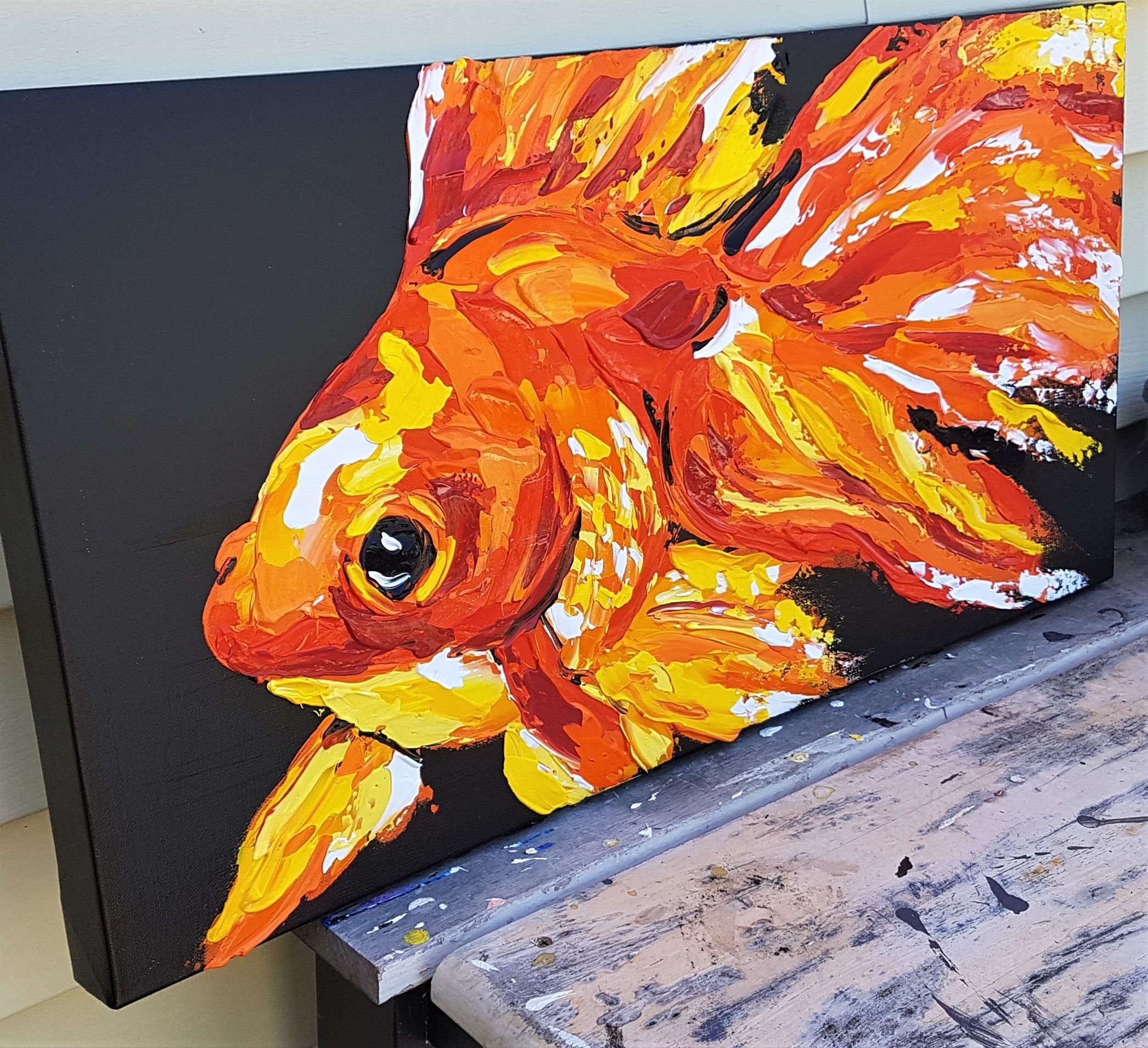 ![Золотая рыбка акрилом]()