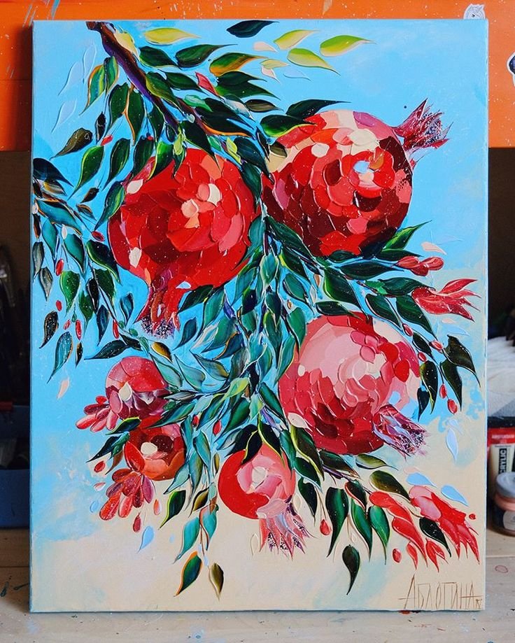 ![Гранаты картина акрилом]()