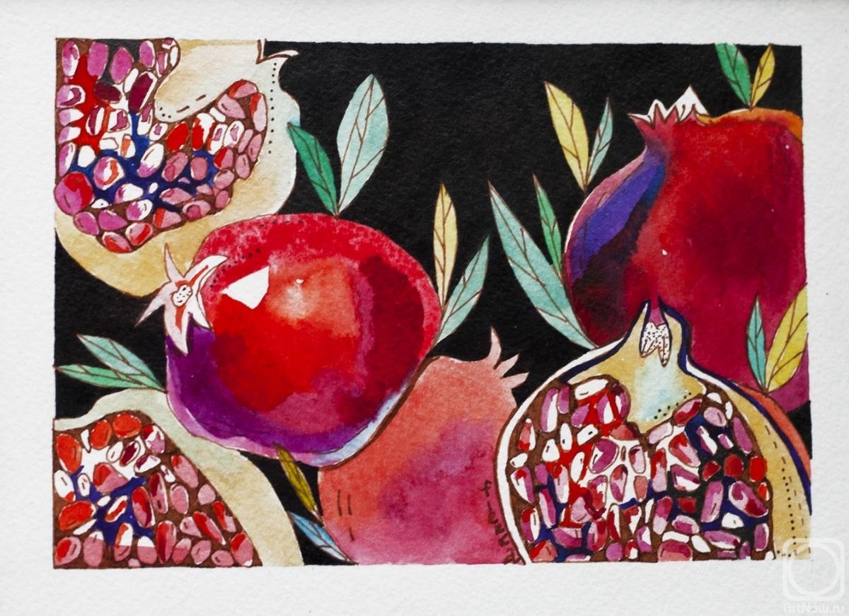 Акварель Базановой гранат