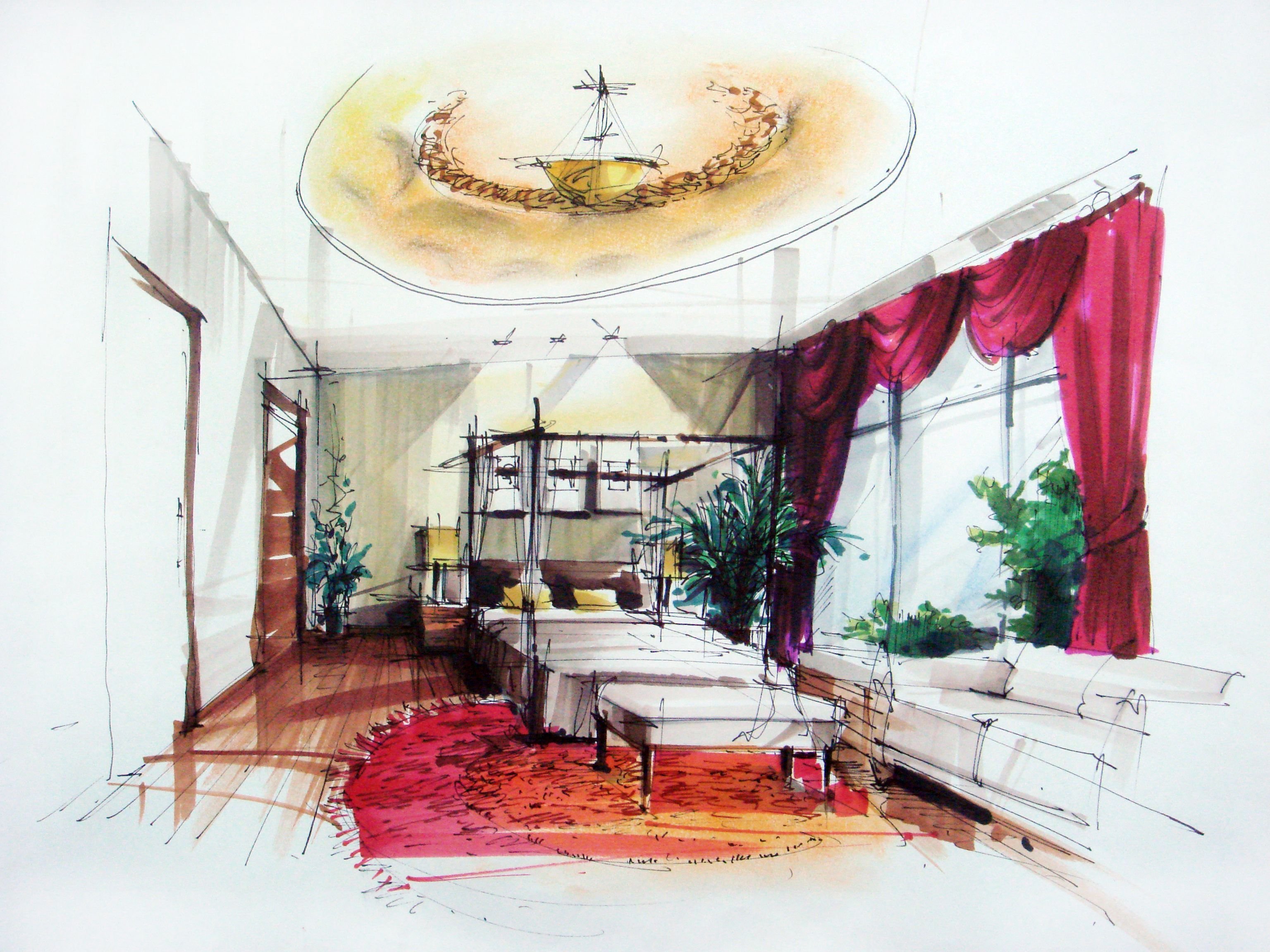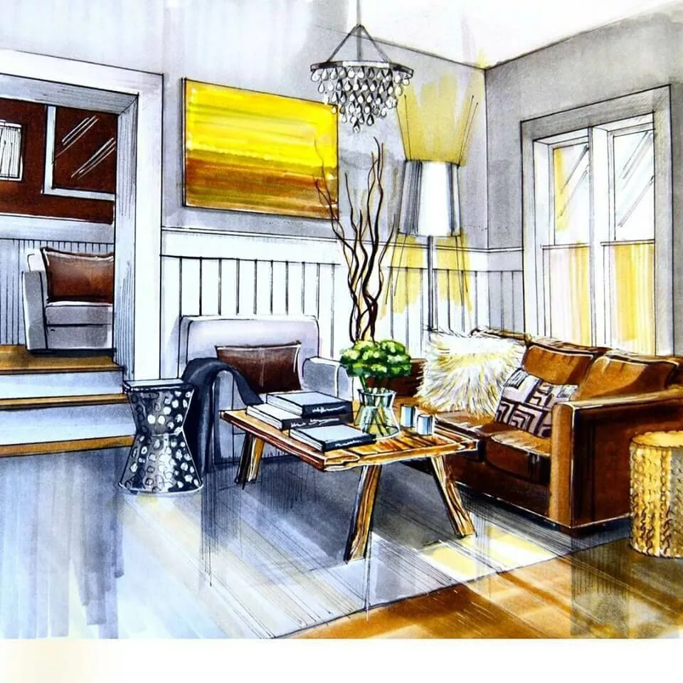 Интерьерные скетчи маркерами