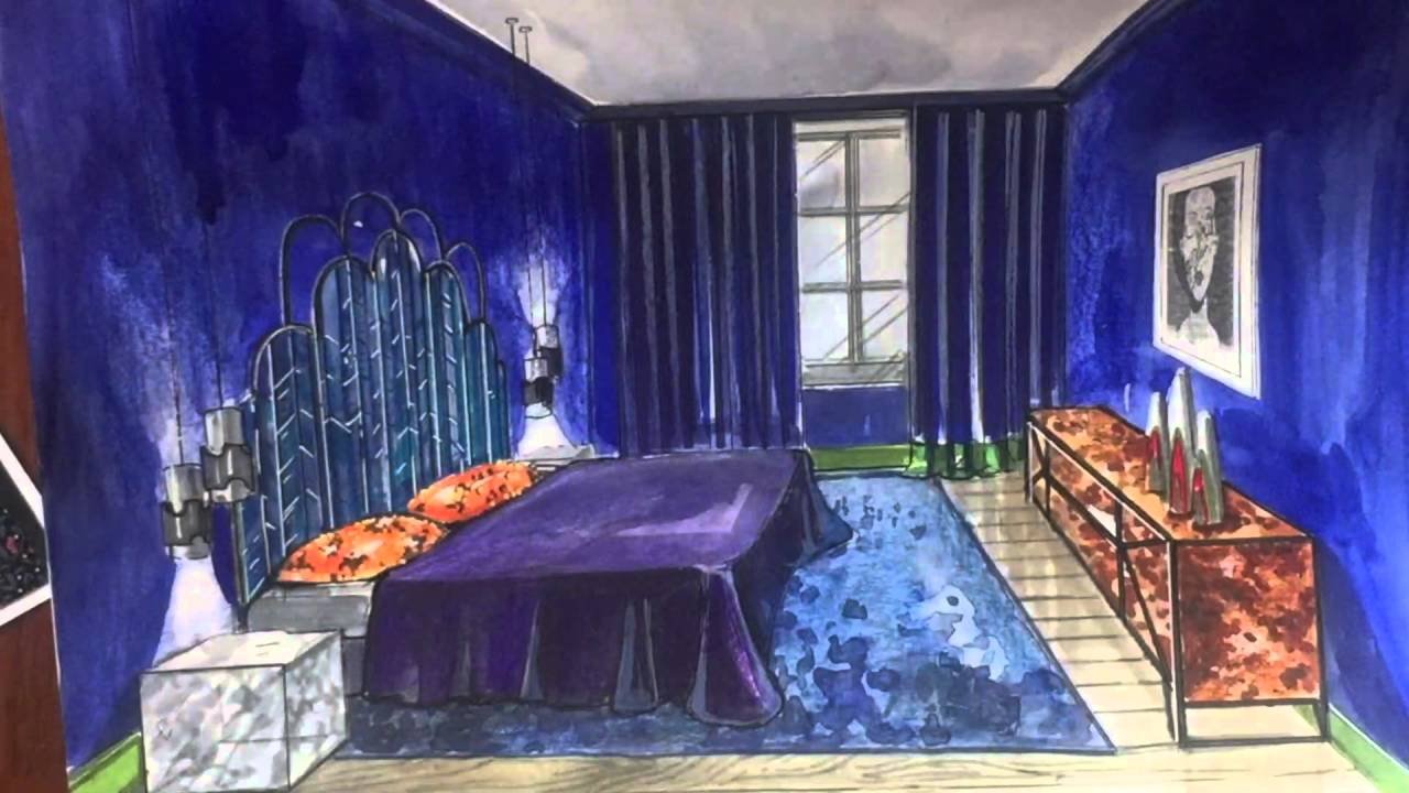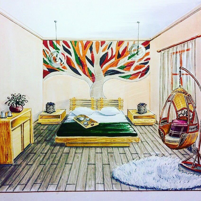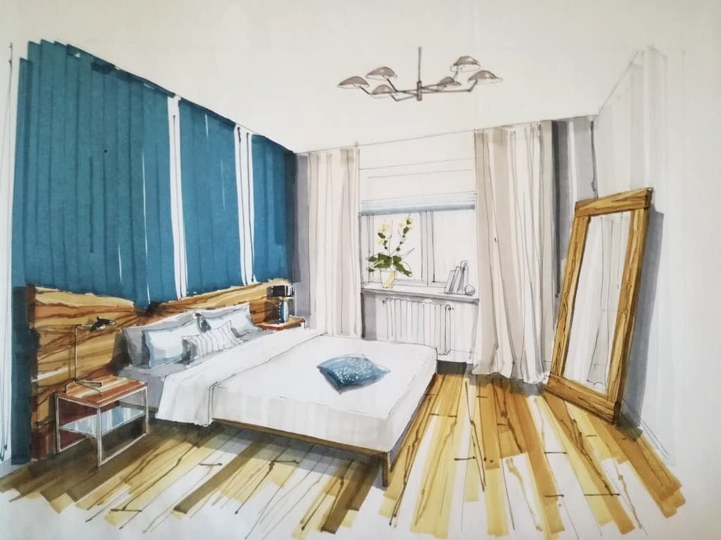 ![Интерьер спальни скетч]()