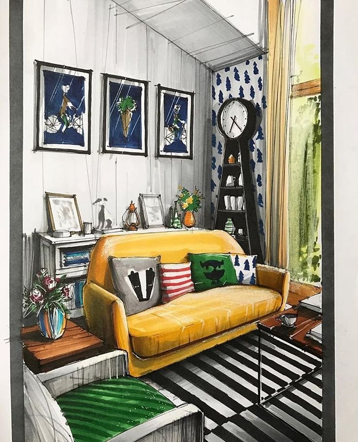 ![Интерьерные скетчи маркерами]()