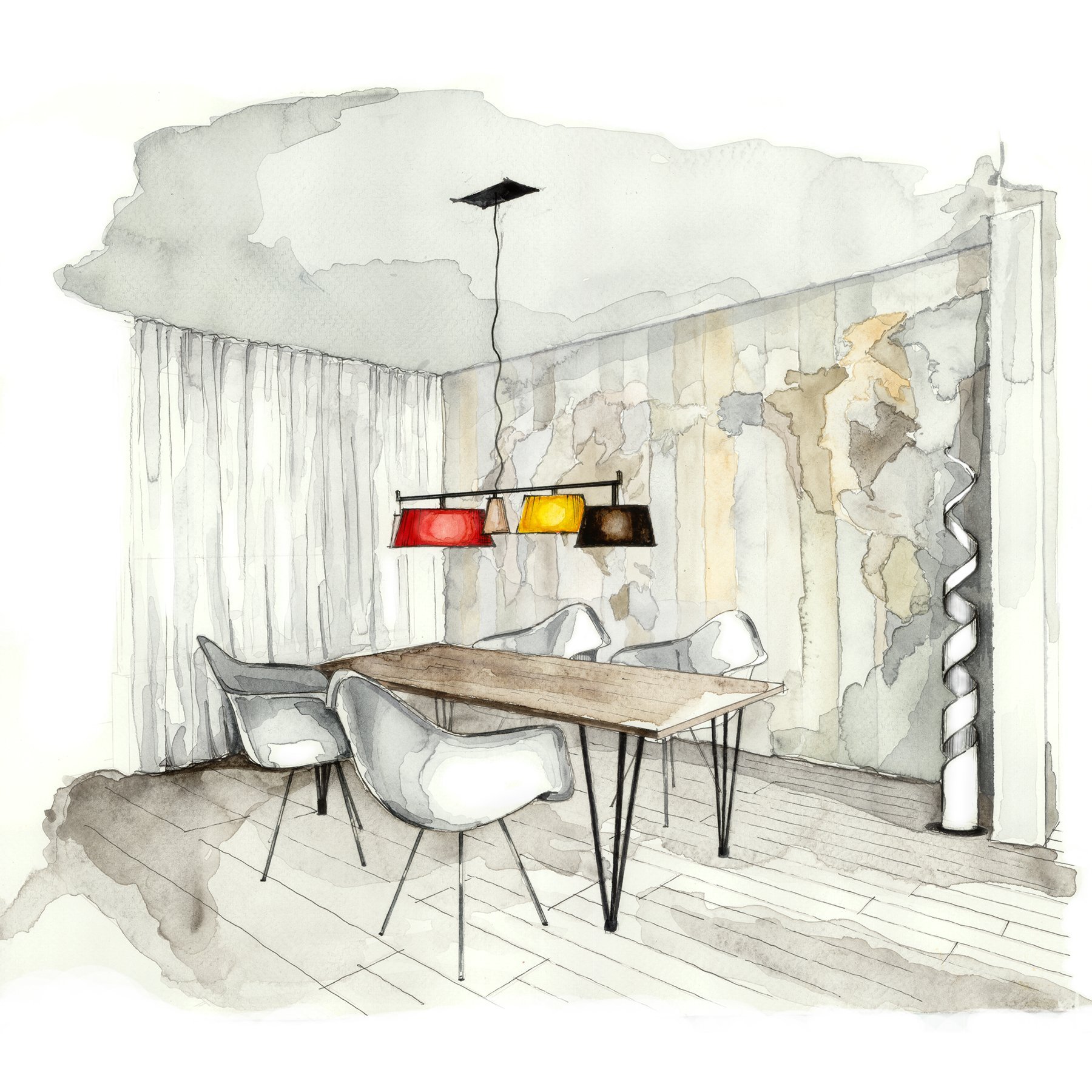 ![Акварельные зарисовки интерьера]()