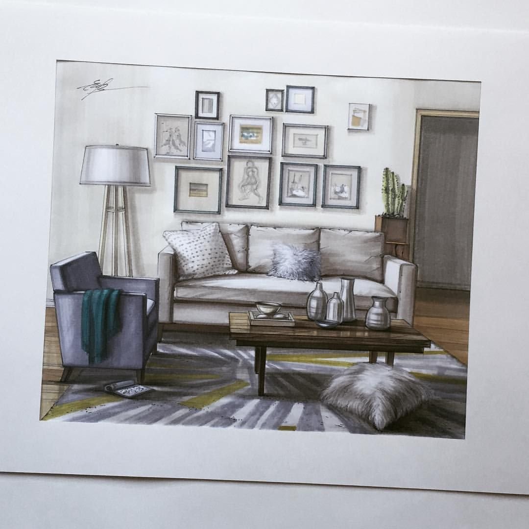 ![Дизайнерские скетчи интерьера]()