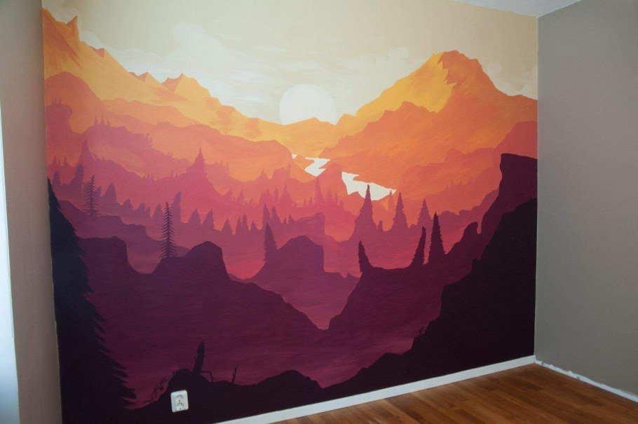 ![Горы на стене краской]()