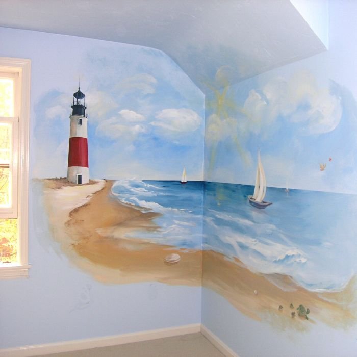 ![Морской пейзаж на стене]()