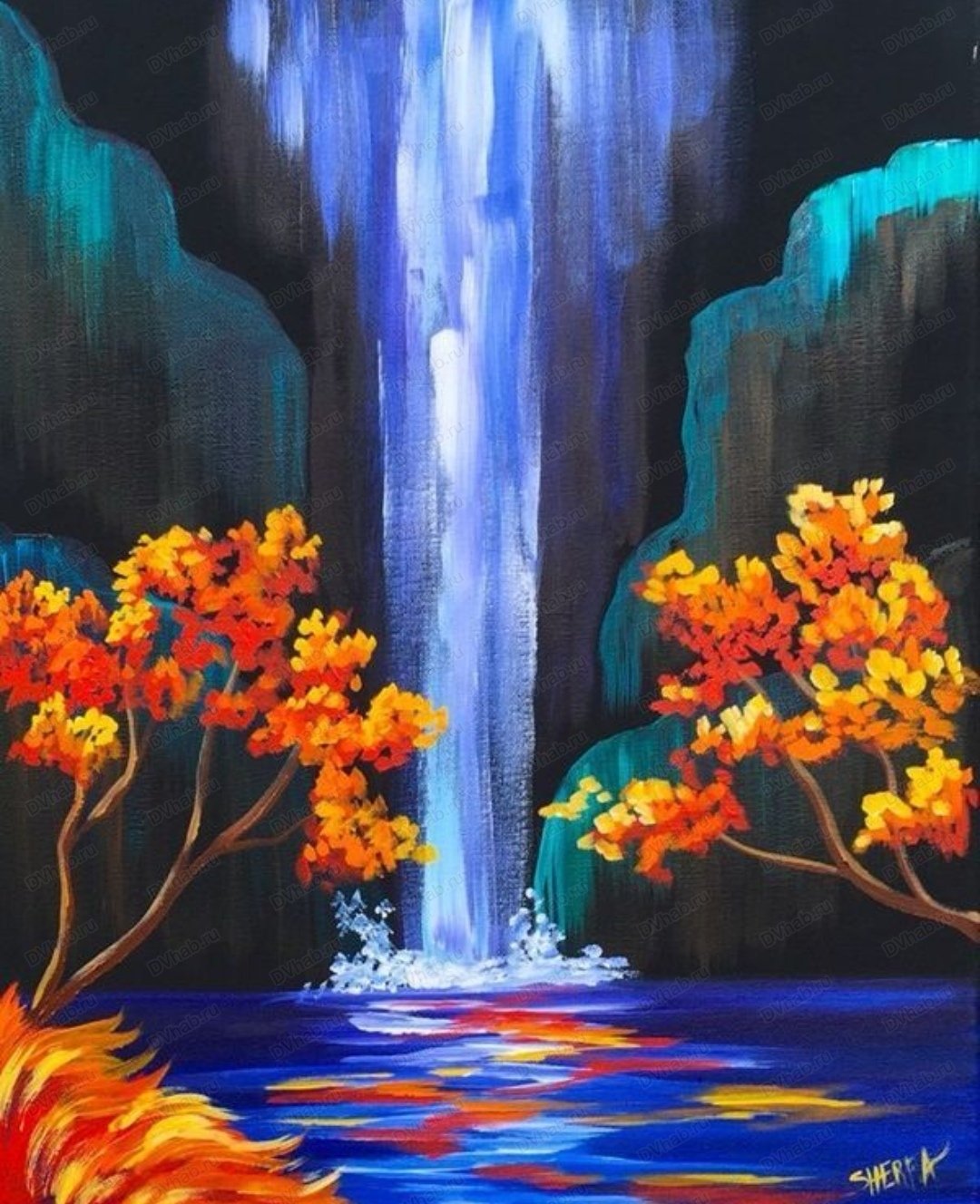 Водопад красками акрилом