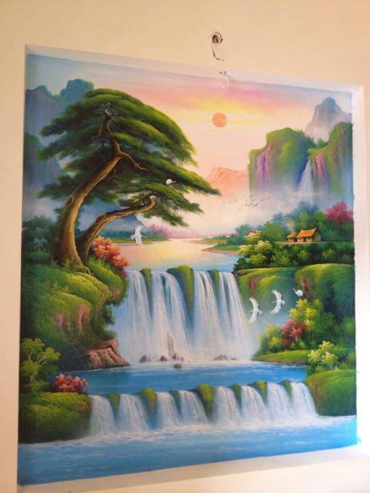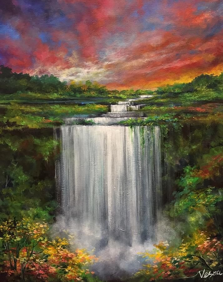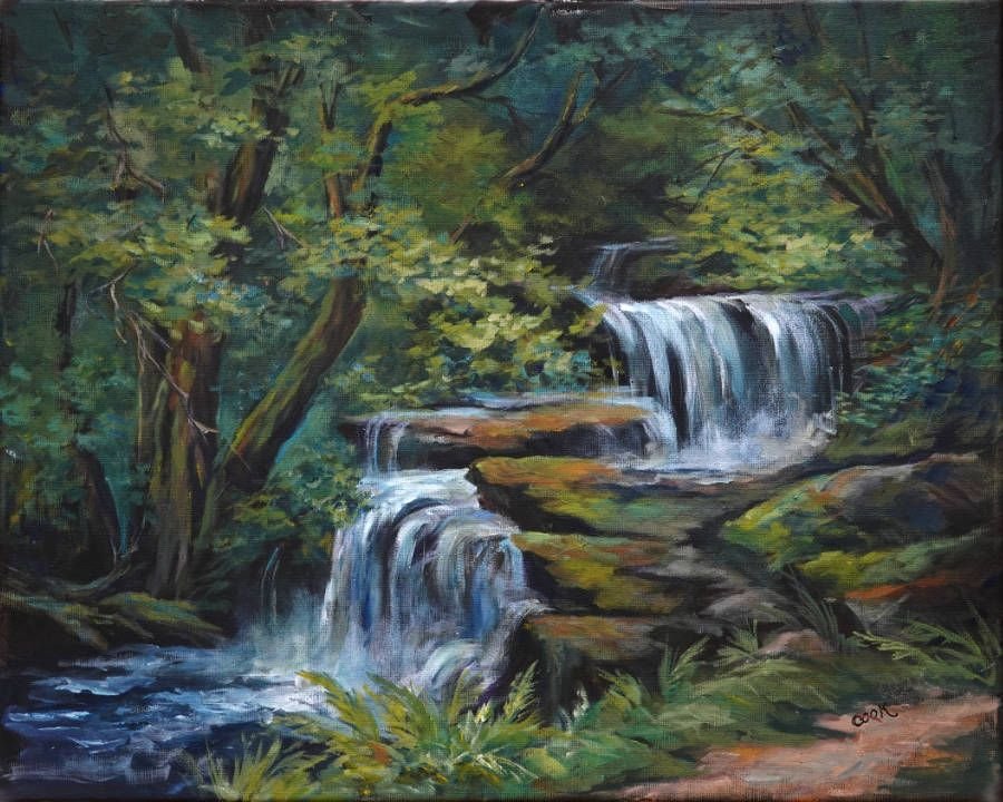 ![Водопады живопись акрил]()