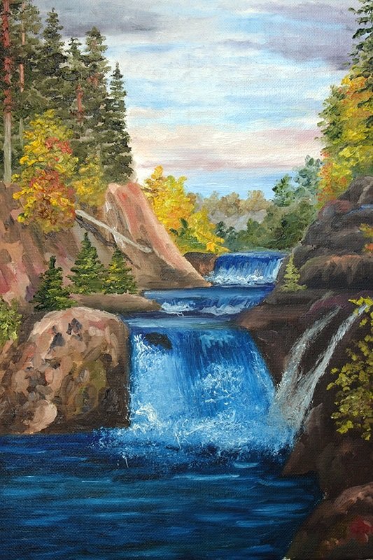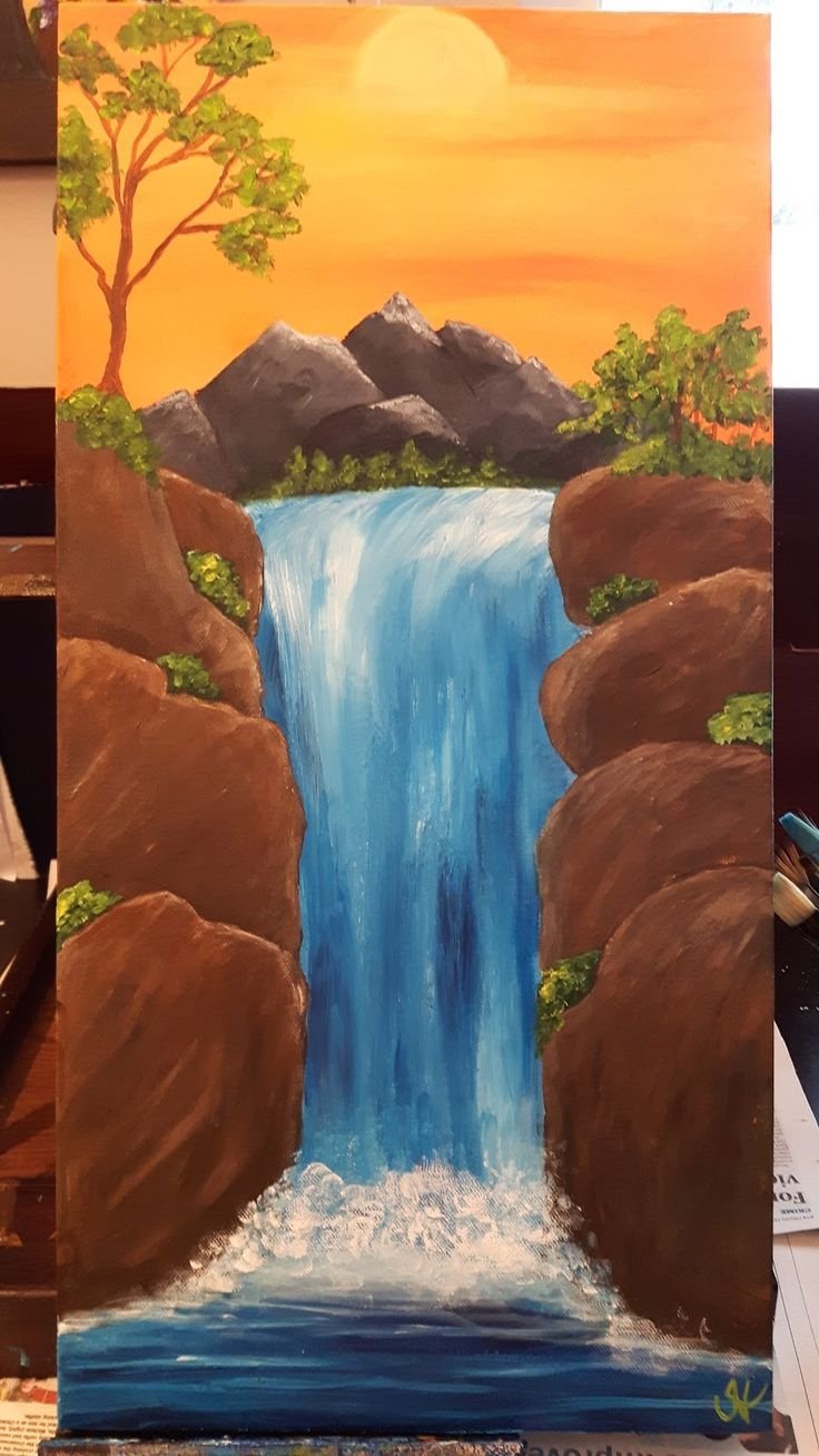 ![Водопад пейзаж акриловая живопись]()
