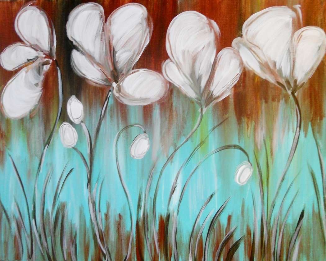 Белые цветы акриловыми красками мастер класс