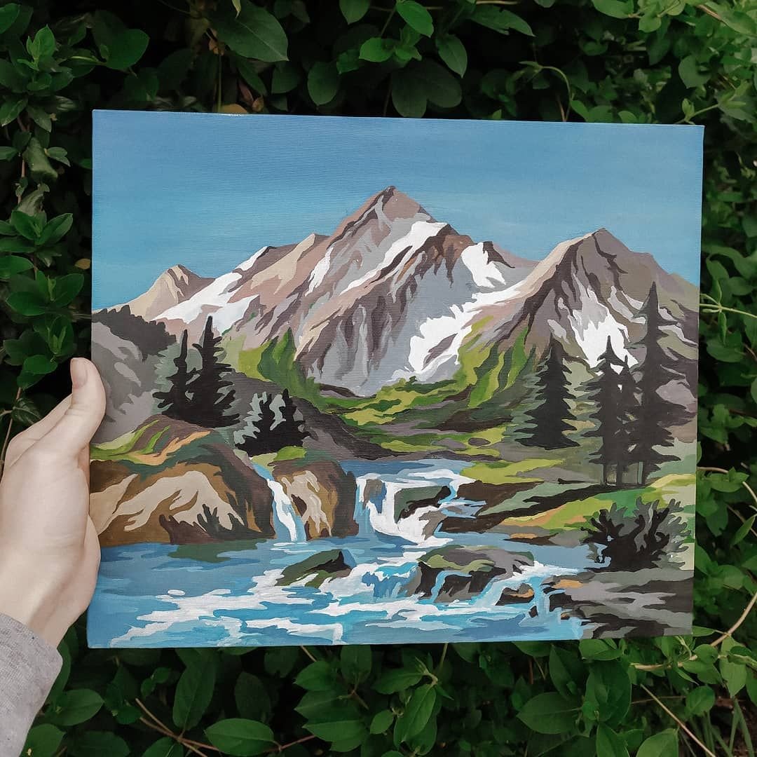 ![Горы акрилом на холсте]()