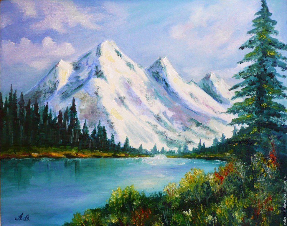 ![Бельчев картины горы акрилом]()
