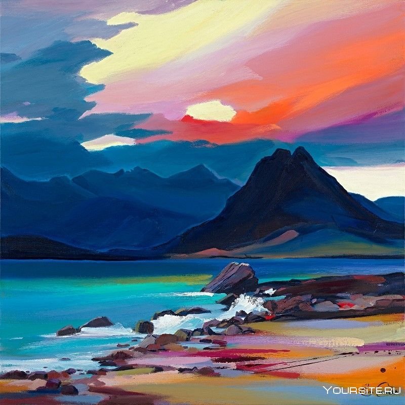 ![Пейзаж красками горы]()
