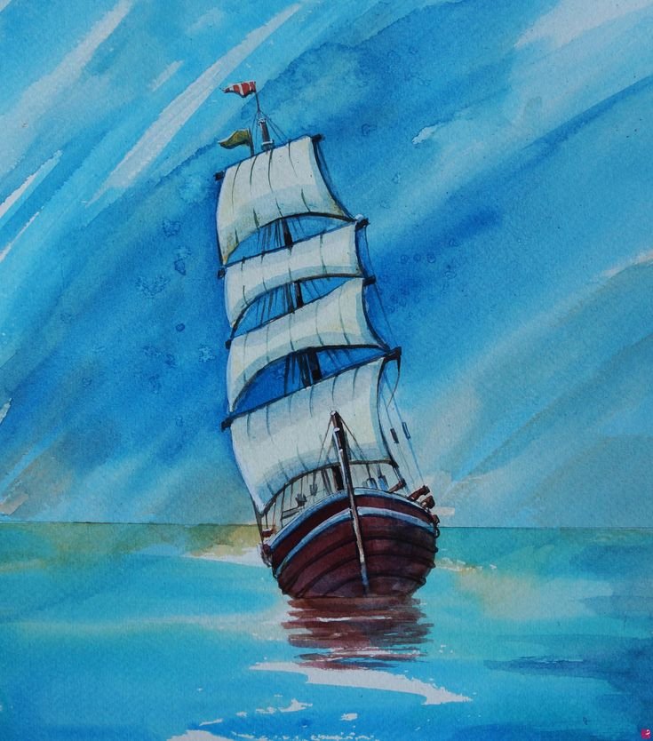 ![Корабль акварелью]()