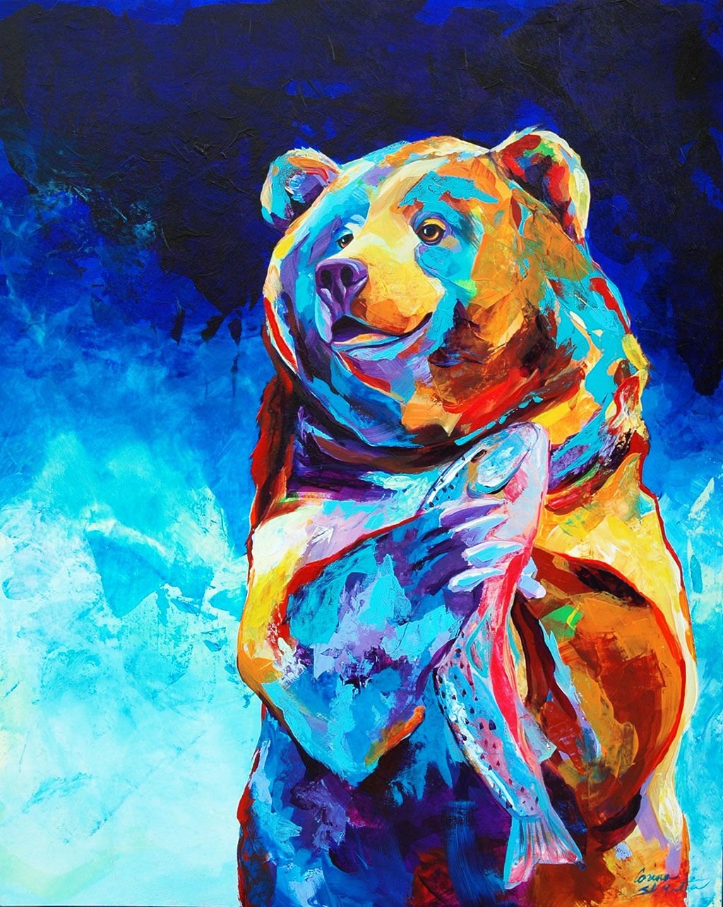 Картины акрилом медведь и рыба