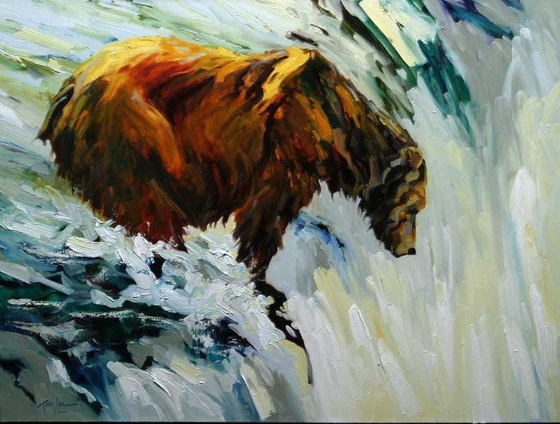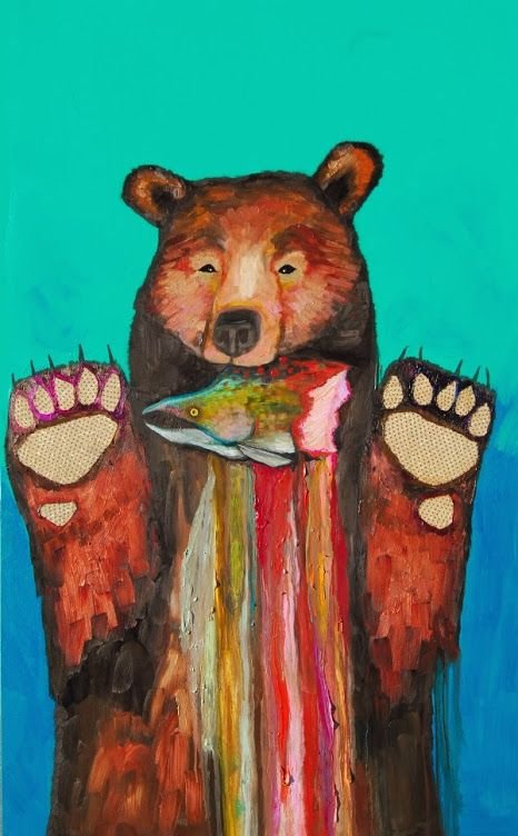 ![Картины акрилом медведь и рыба]()