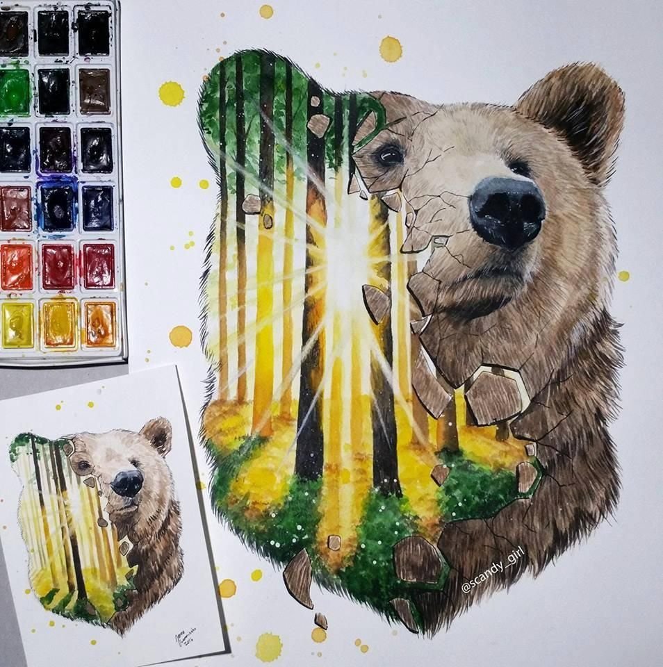 ![Медведь картина акварель]()