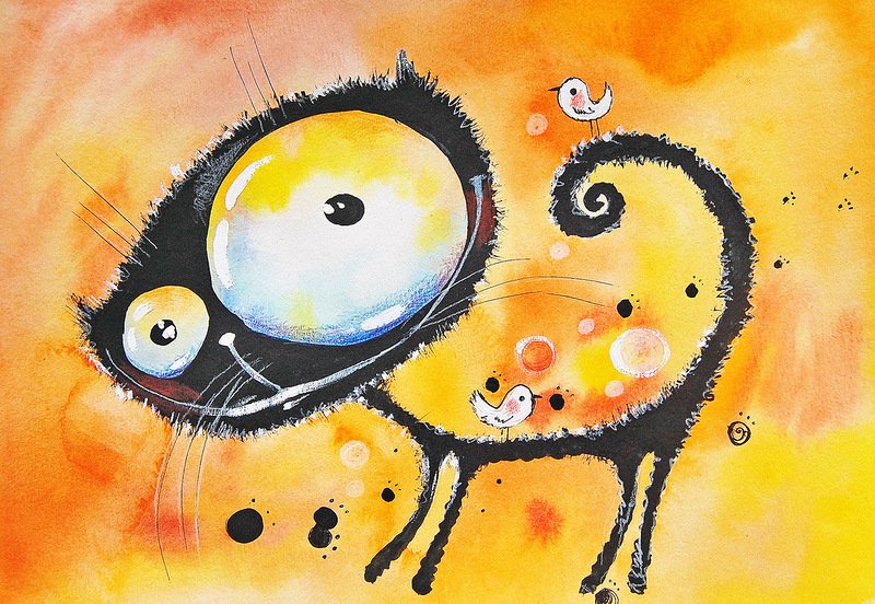 ![Смешной кот акварель]()