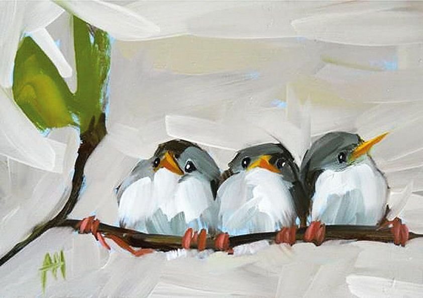 ![Птицы акриловыми красками]()
