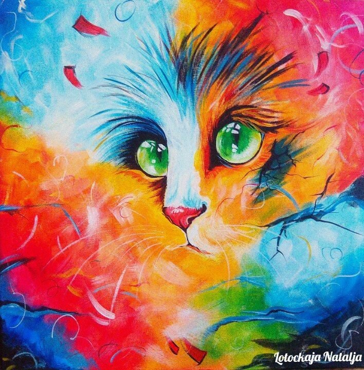 ![Кошка акриловыми красками]()