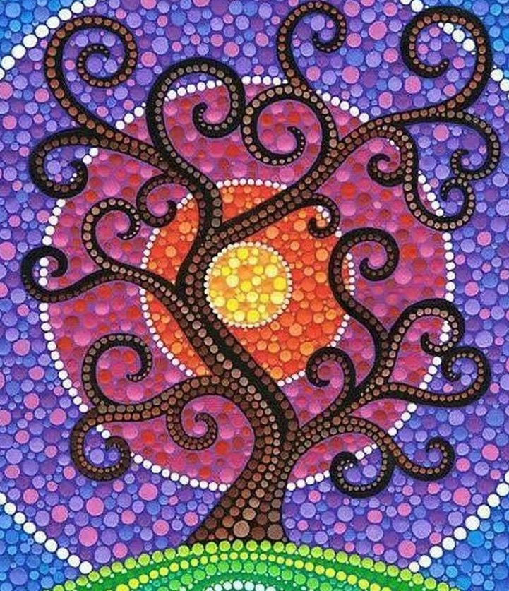 ![Деревья в точечной живописи]()