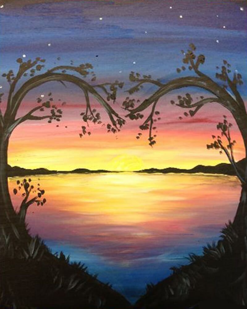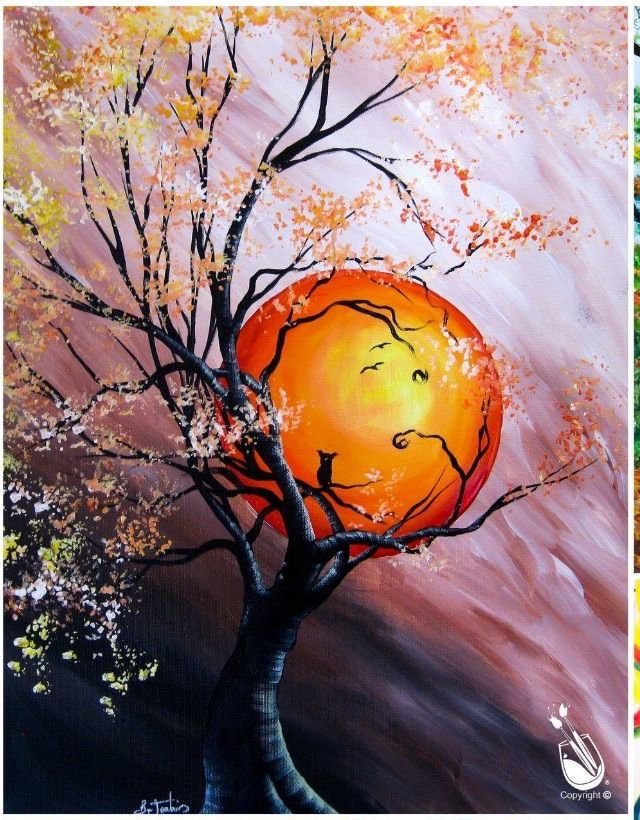 ![Деревья на закате живопись]()