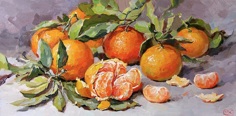 Мандарины в живописи маслом