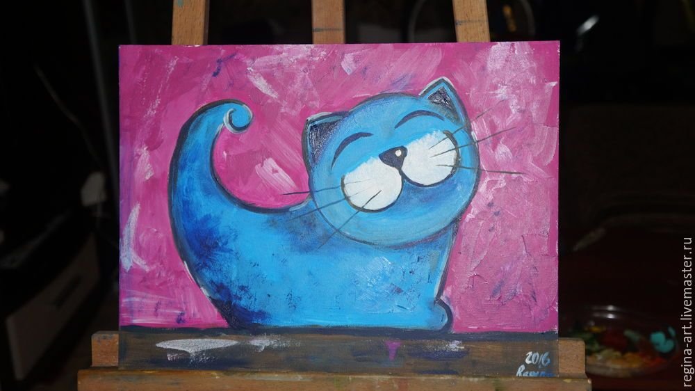 ![Кот акрилом на холсте для начинающих]()