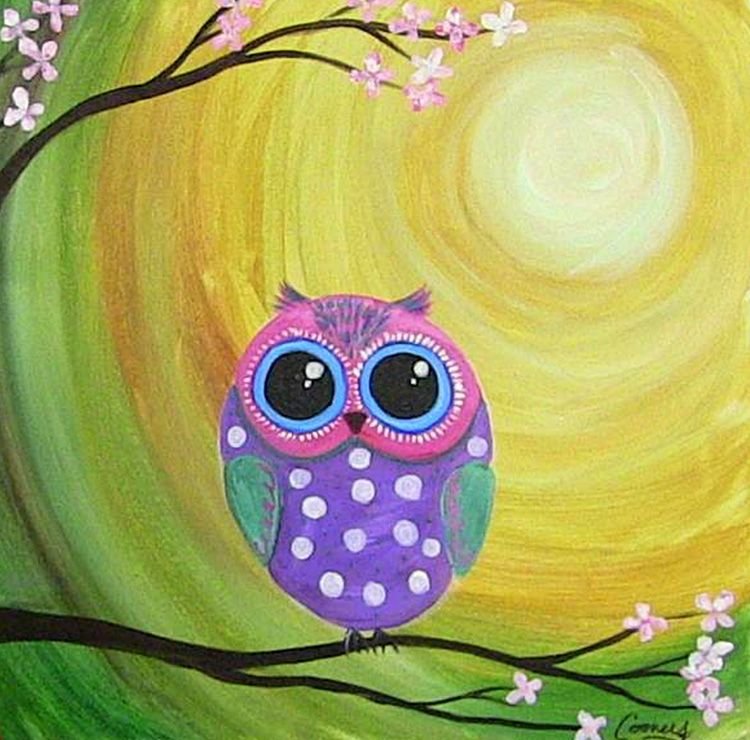 Совушка акрилом на холсте