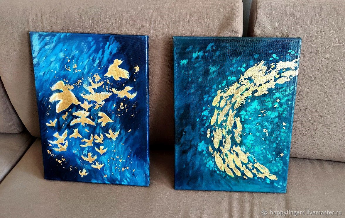 Картины акриловыми красками и поталью