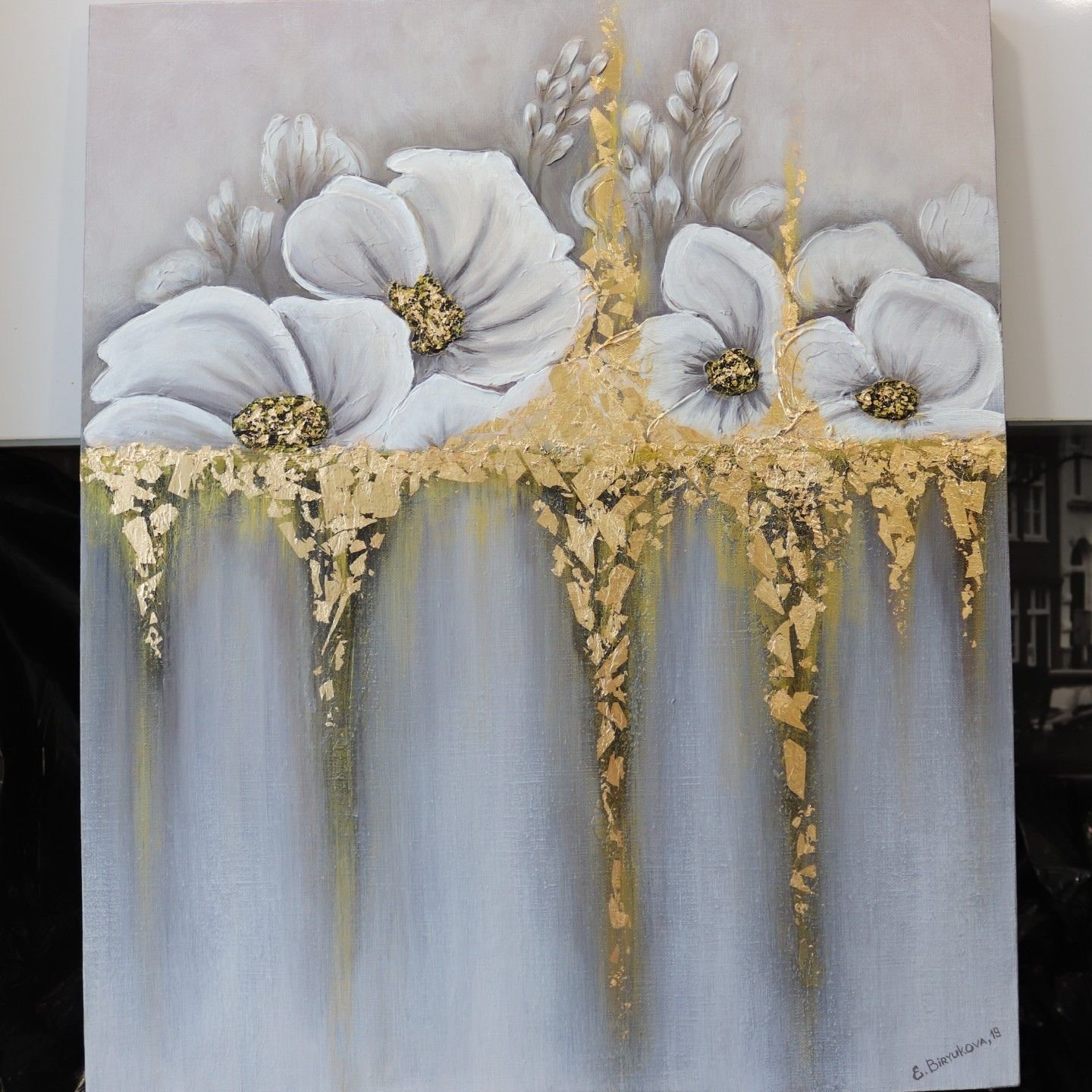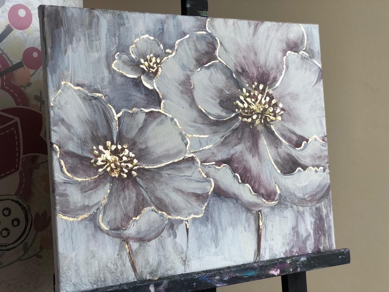 ![Цветы акрилом с поталью]()