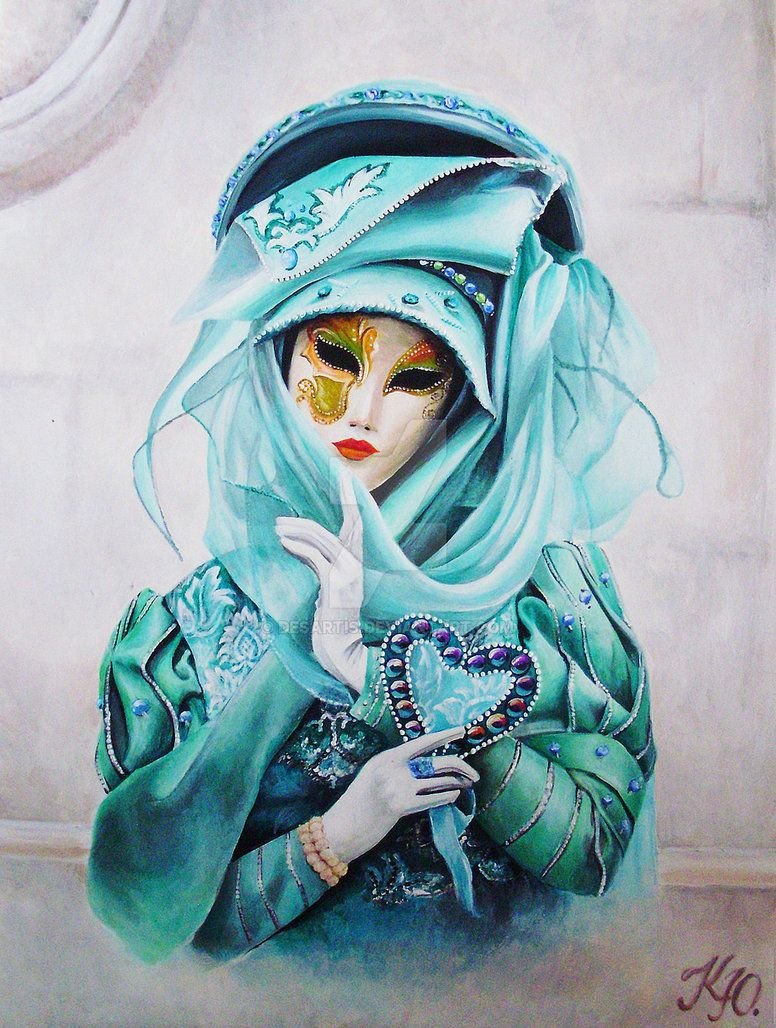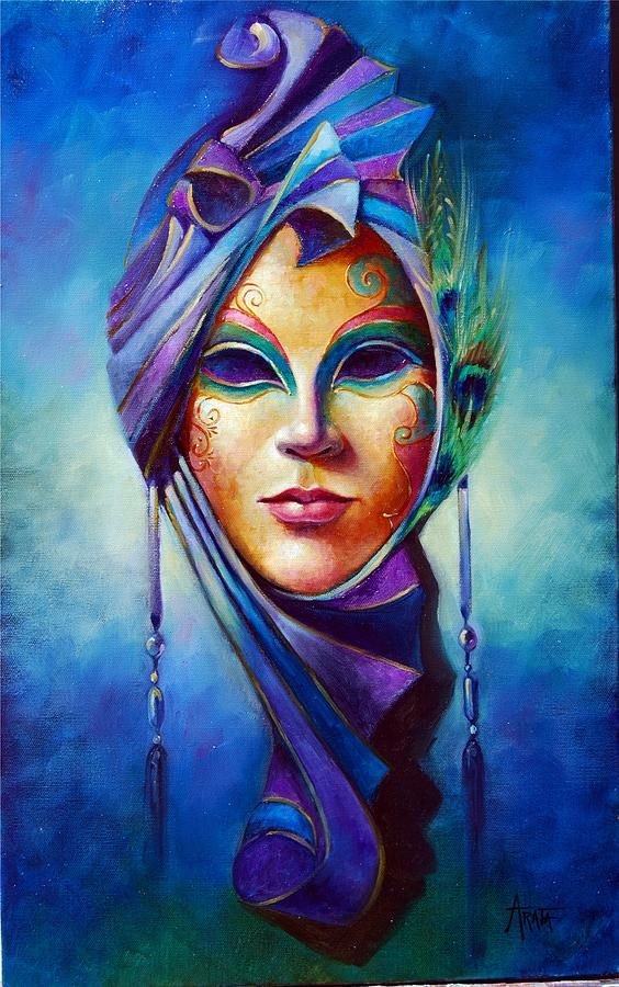 ![Женщина в маске живопись]()