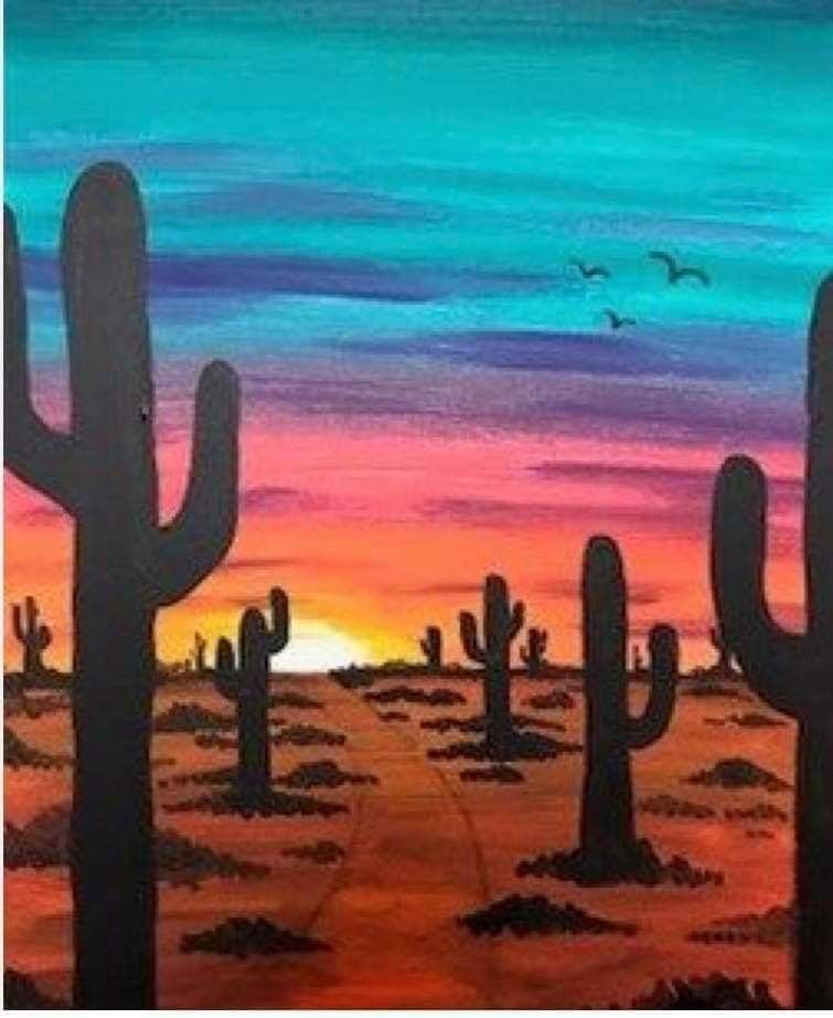 ![Кактусы на закате рисунок]()