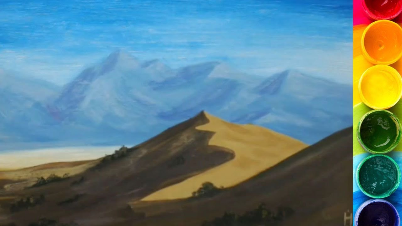 ![Пейзаж пустыни красками]()