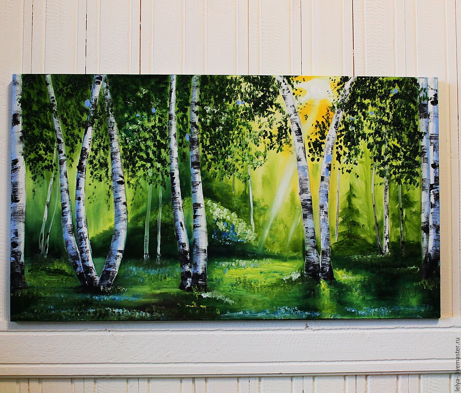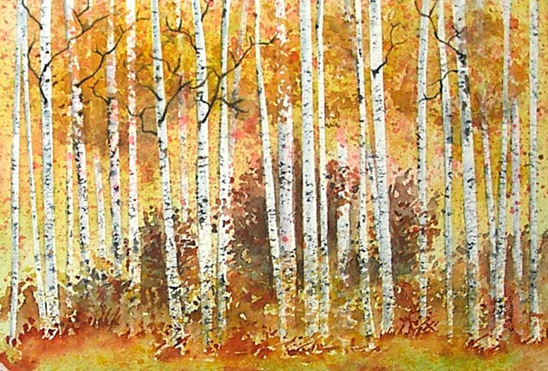 ![Березовая роща акрилом]()