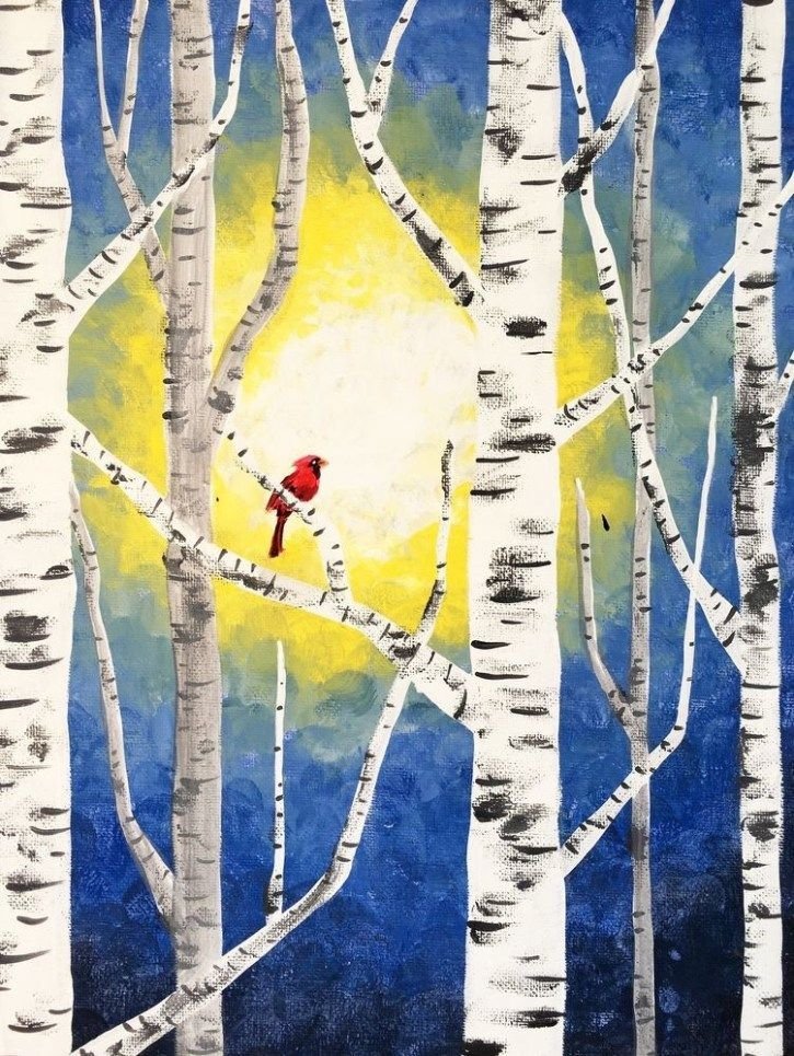 ![Нарисовать березу акрилом]()