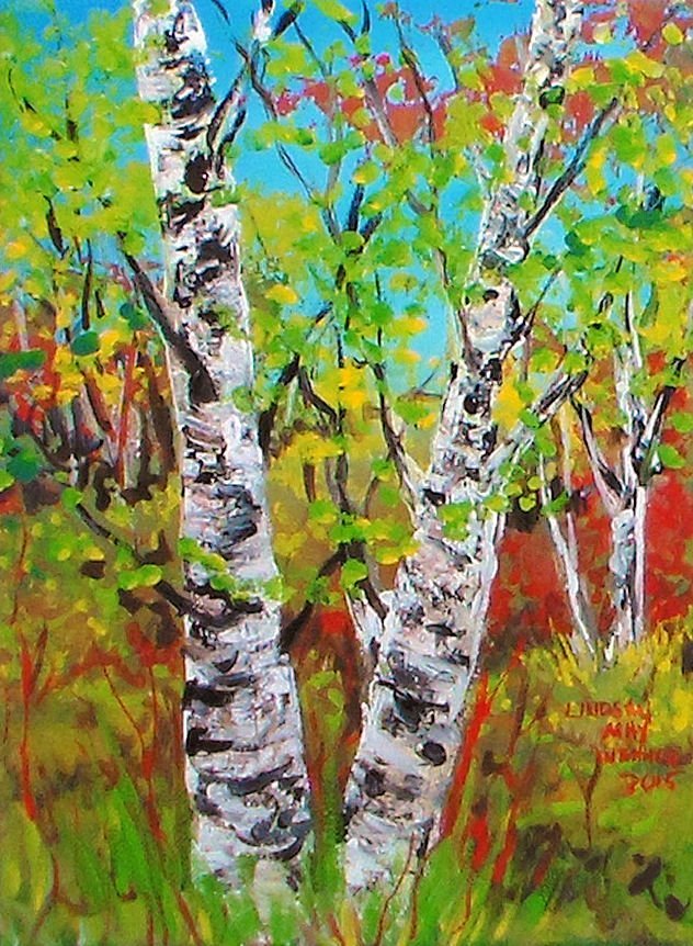 ![Береза акриловыми красками]()