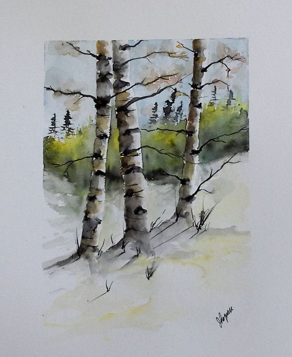 Пейзаж с березами акварелью и карточкой!